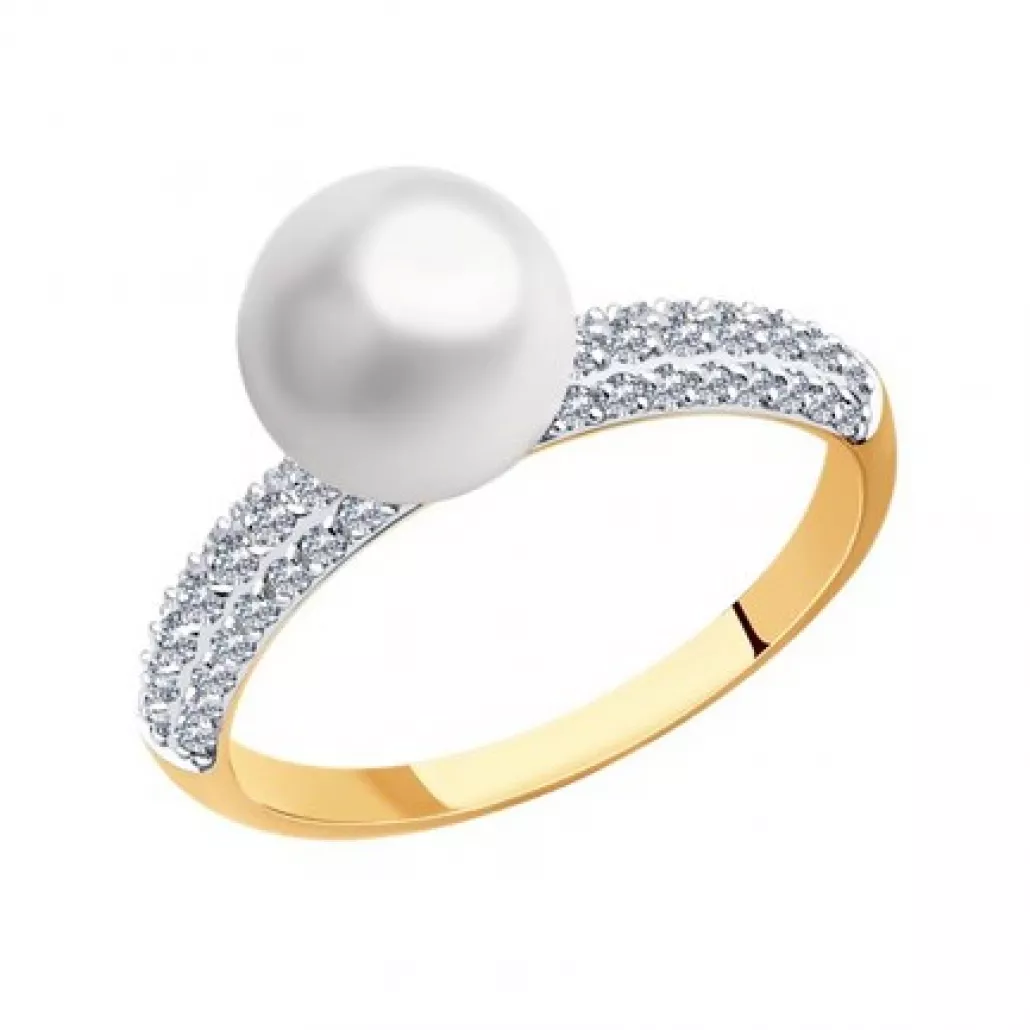 Золотое кольцо 585, женское, с жемчугом и фианитом, размер 18