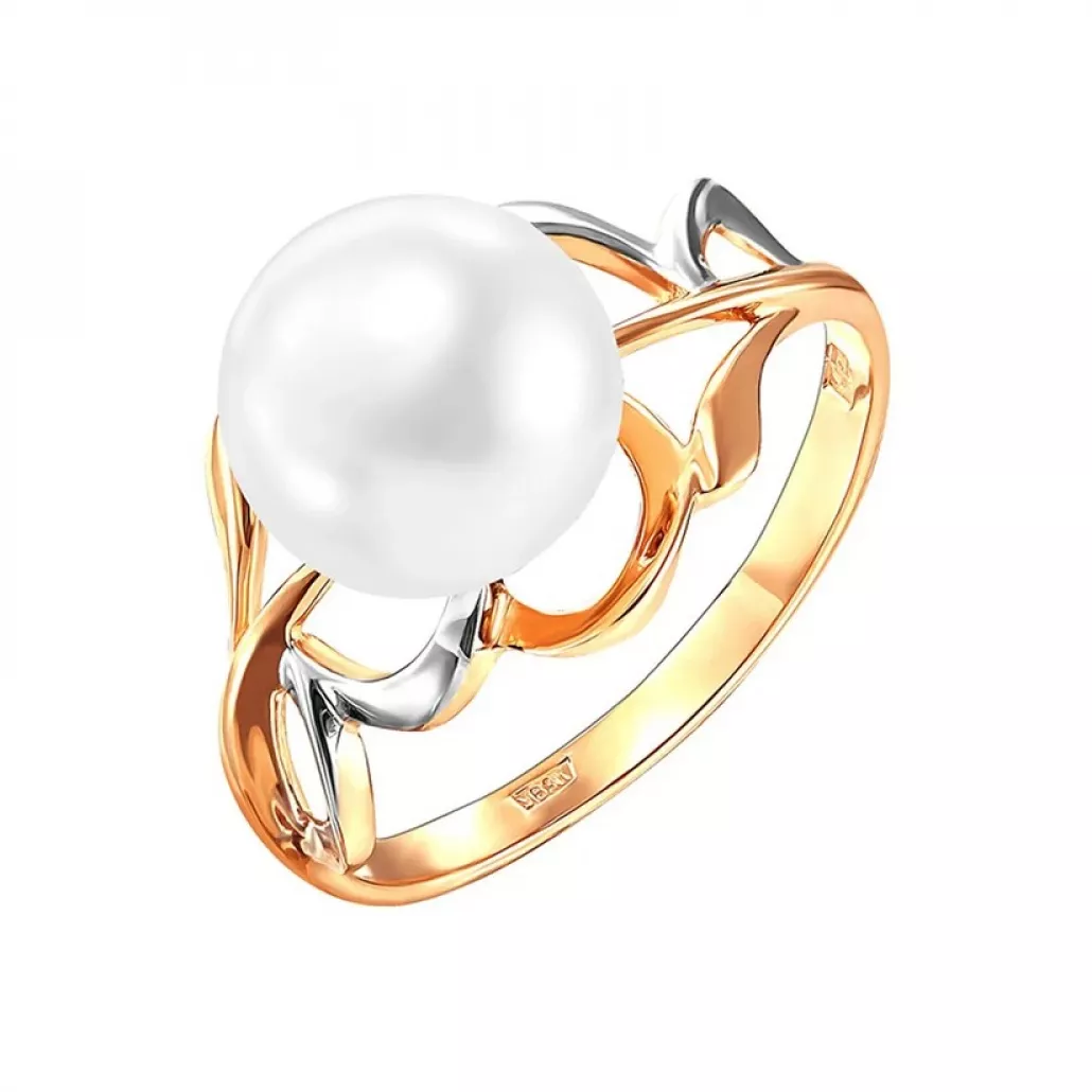 Золотое кольцо 585, женское, с жемчугом, размер 18.5 Артикул: 190-1-944Р