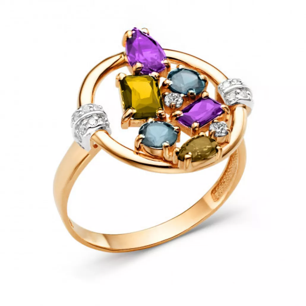 Золотое кольцо 585, женское, с аметистом и топазом, размер 18 Артикул: К1582