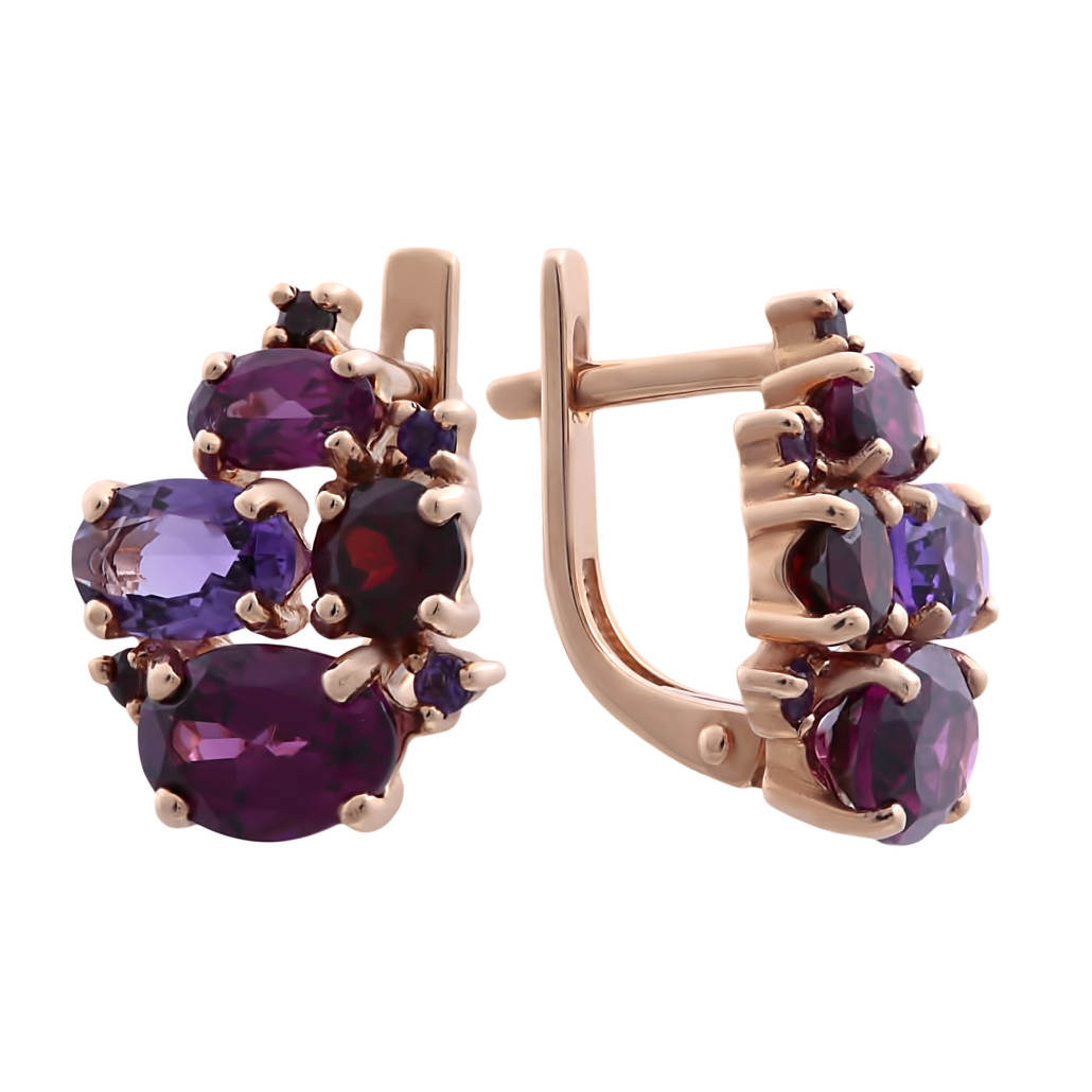 - Золотые серьги 585, женские, с аметистом и гранатом