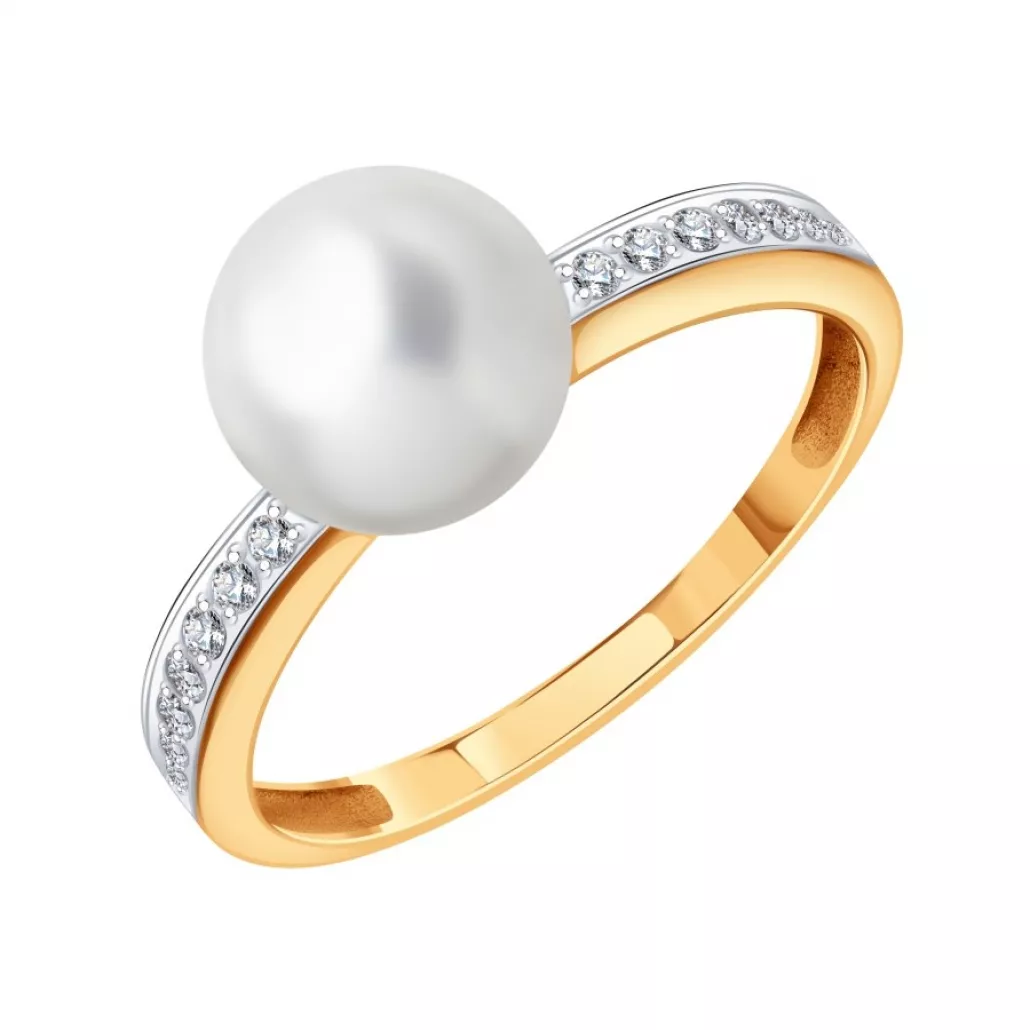 Золотое кольцо 585, женское, с бриллиантом и жемчугом, размер 17