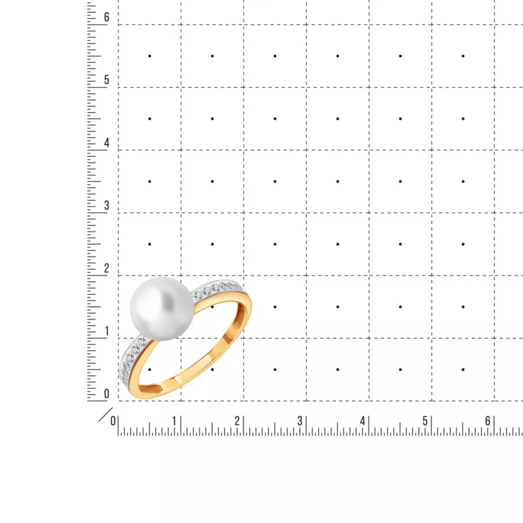 Золотое кольцо 585, женское, с бриллиантом и жемчугом, размер 17 Артикул: Т14401Б623