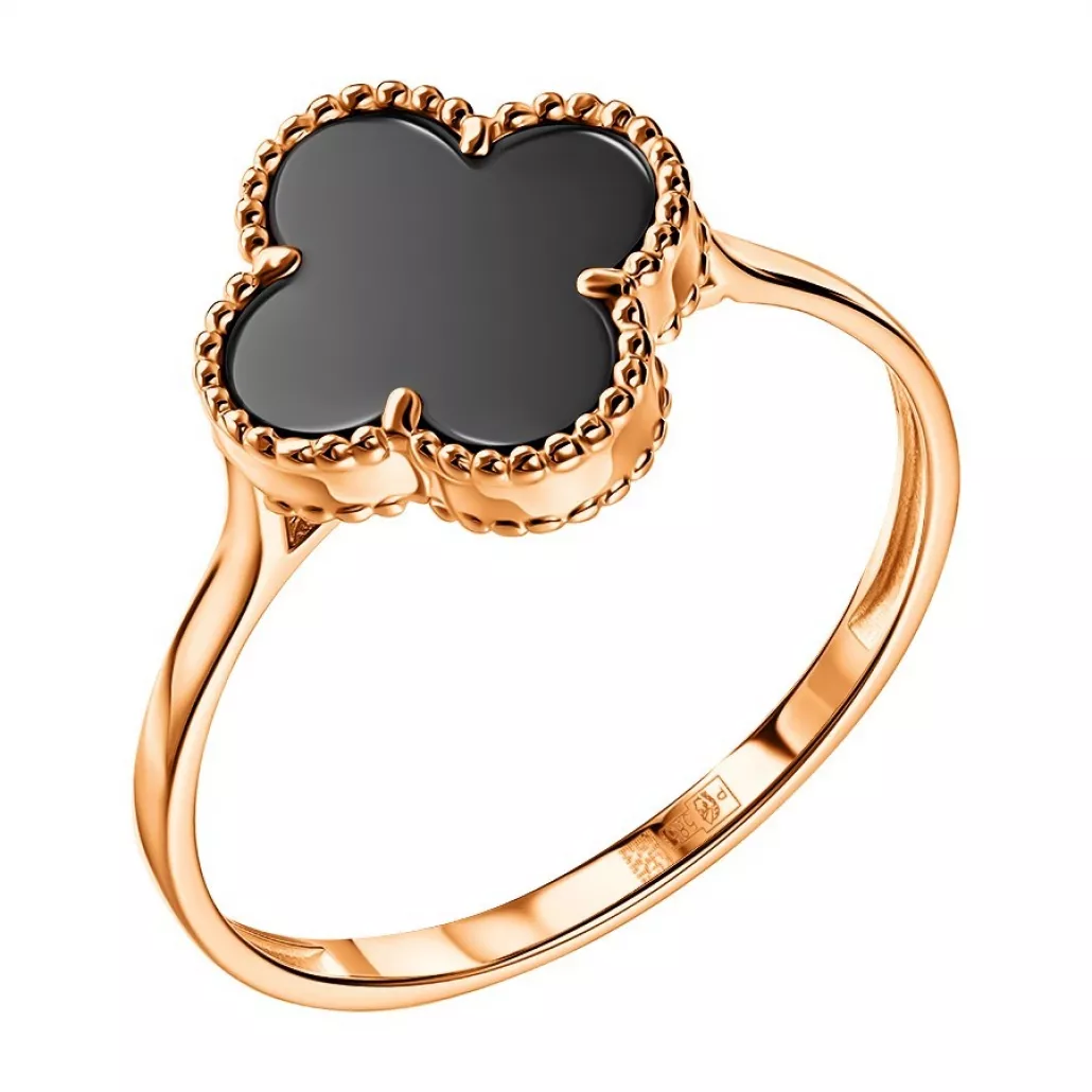 - Золотое кольцо 585, женское, с ониксом, размер 18