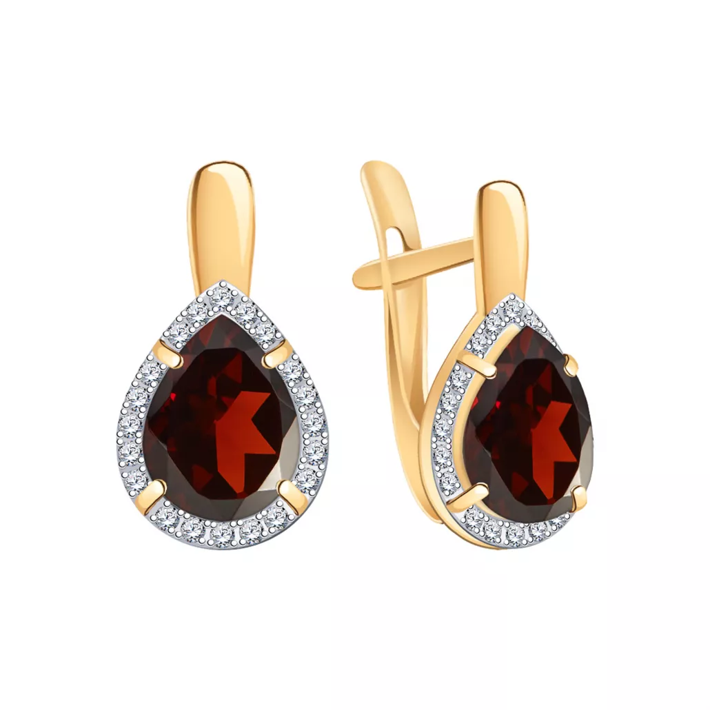 - Золотые серьги 585, женские, с гранатом и фианитом