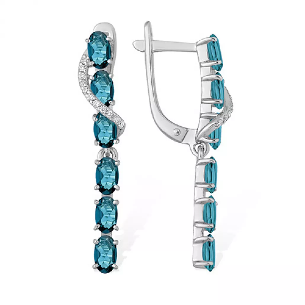 - Серебряные серьги 925, женские, с топазом и фианитом