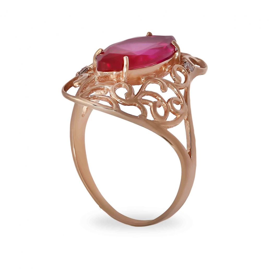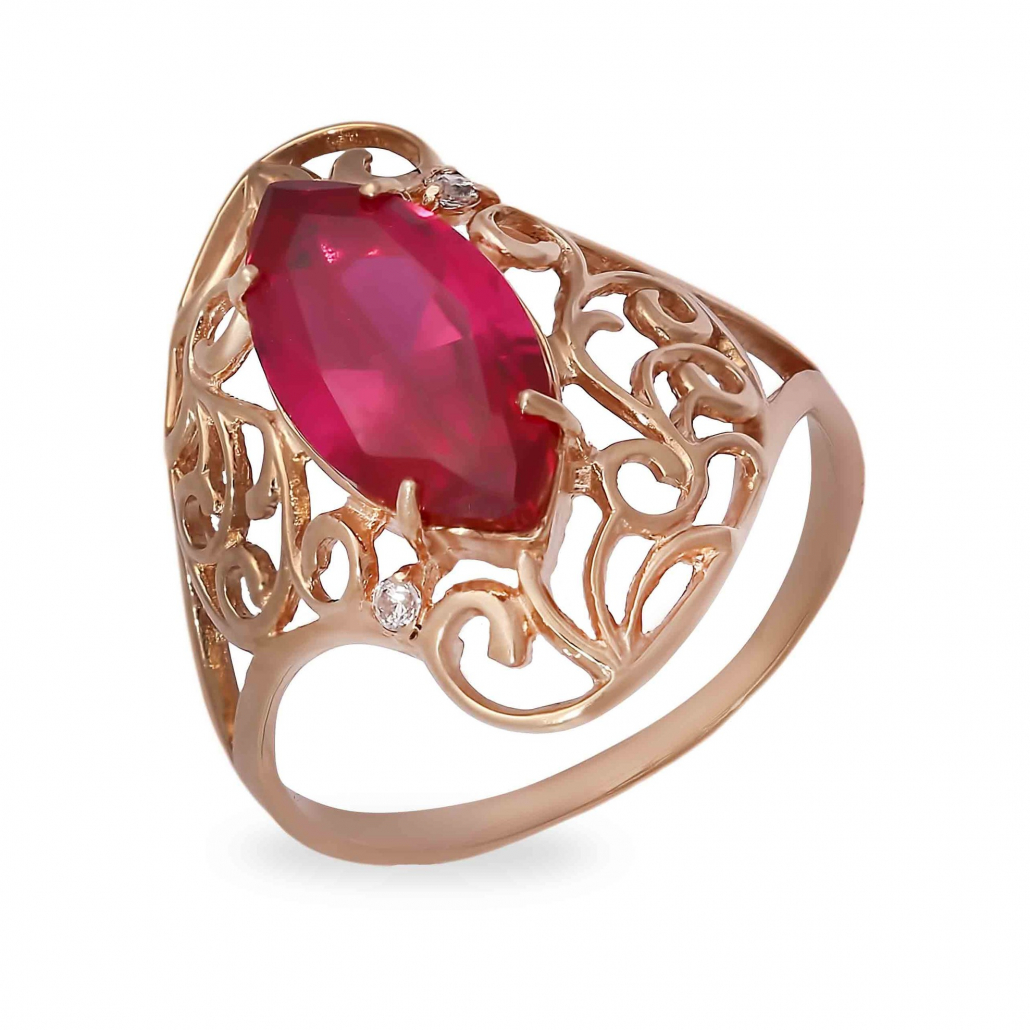 Золотое кольцо 585, женское, с корундом, размер 20.5 Артикул: 104120 кор