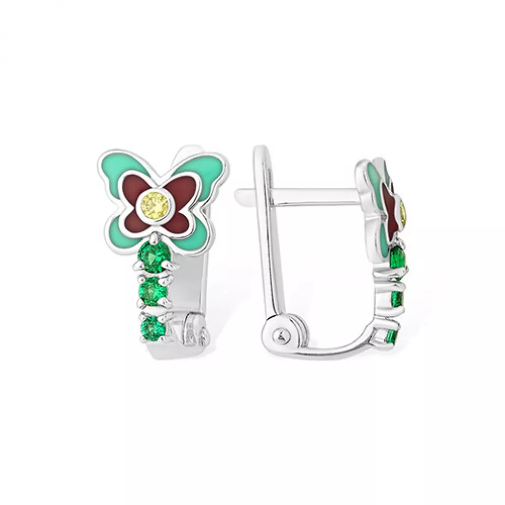 - Серебряные серьги 925, женские, с эмалью и фианитом