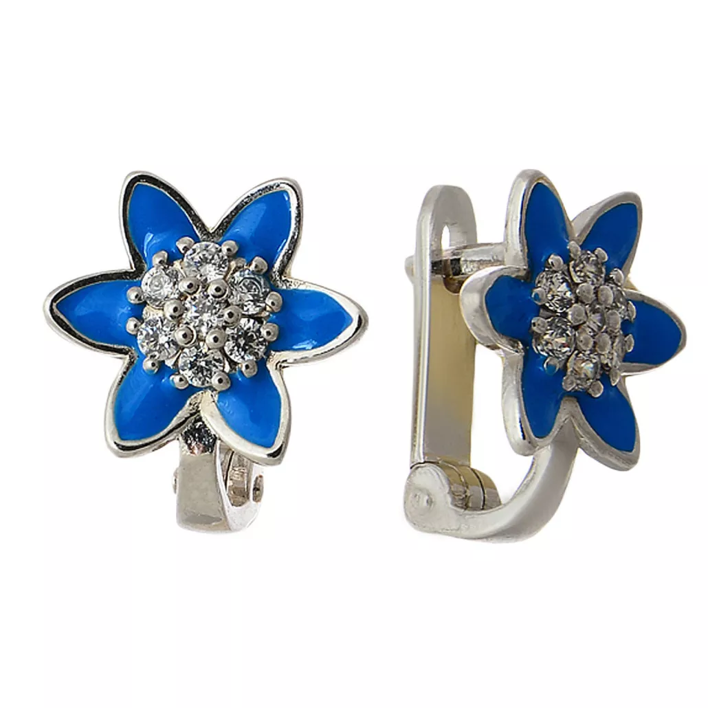 - Серебряные серьги 925, женские, с эмалью и фианитом