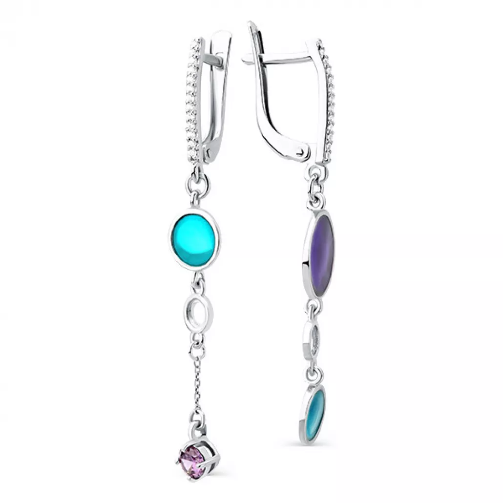 Серебряные серьги 925, женские, с эмалью и фианитом