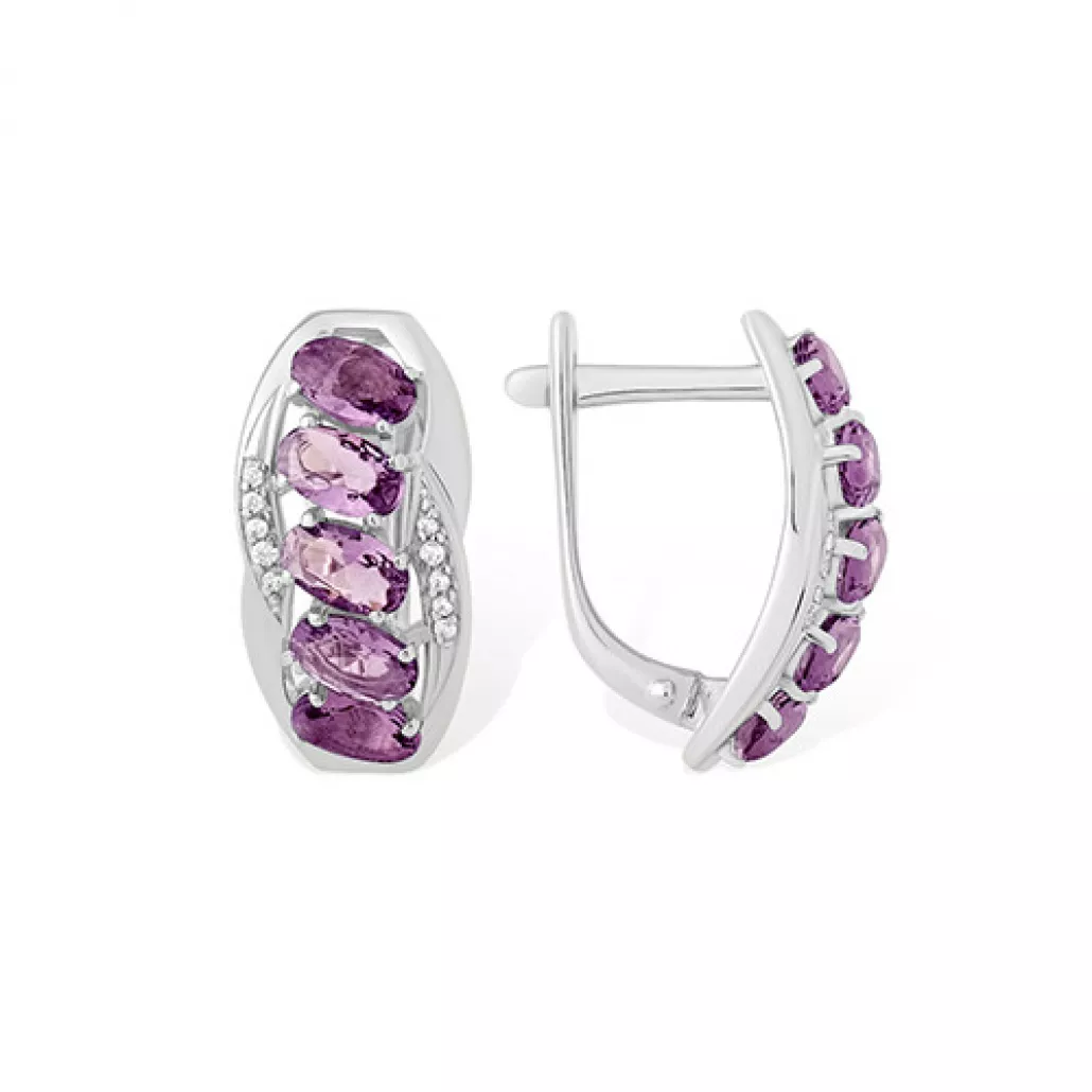 Серебряные серьги 925, женские, с аметистом и фианитом Артикул: 1215014455-505