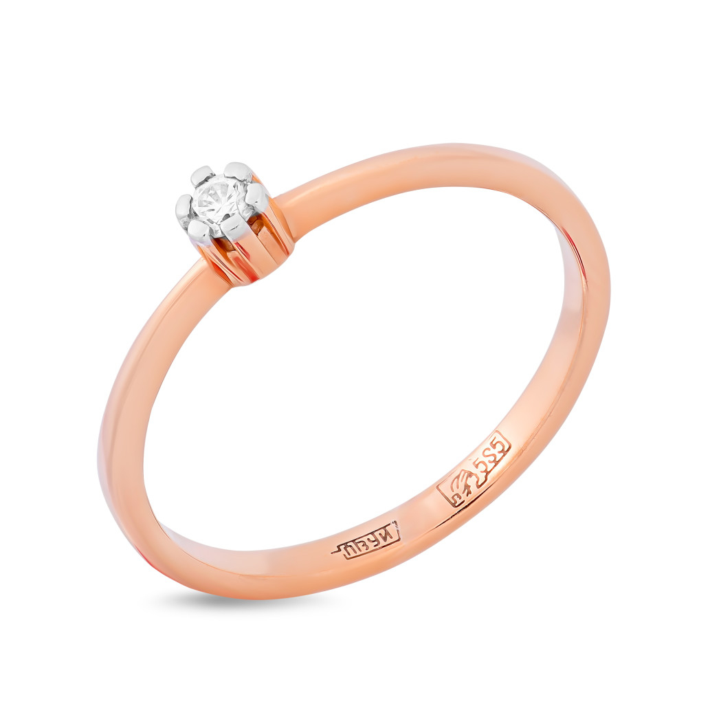 - Золотое кольцо 585, женское, с бриллиантом, размер 17