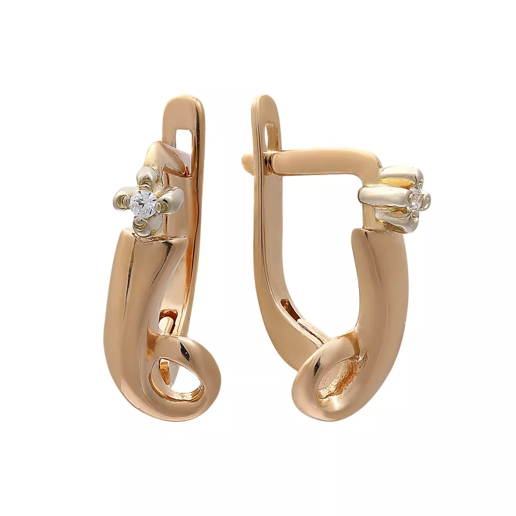 - Золотые серьги 585, женские, с фианитом