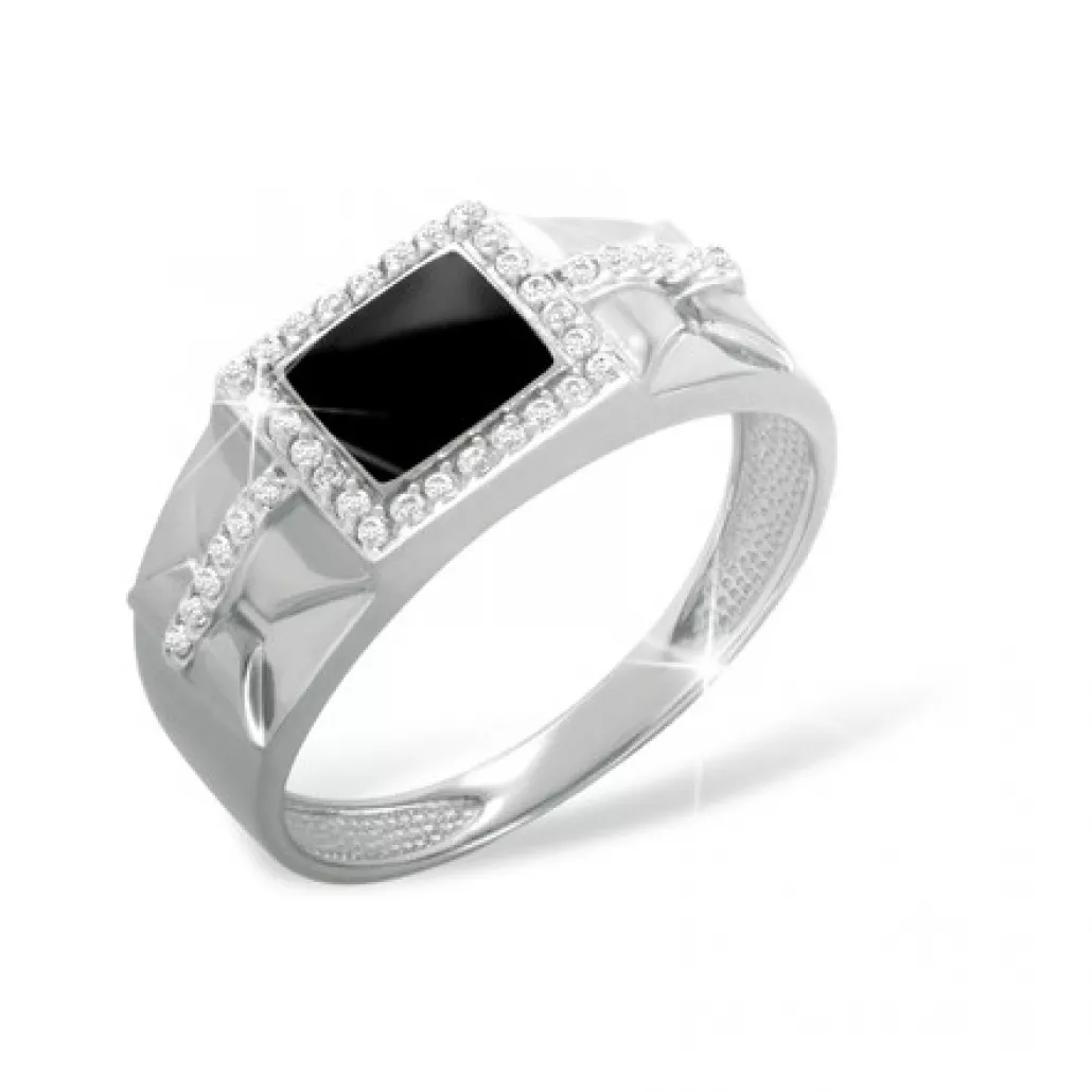 Кольцо-печатка с фианитом и эмалью из серебра