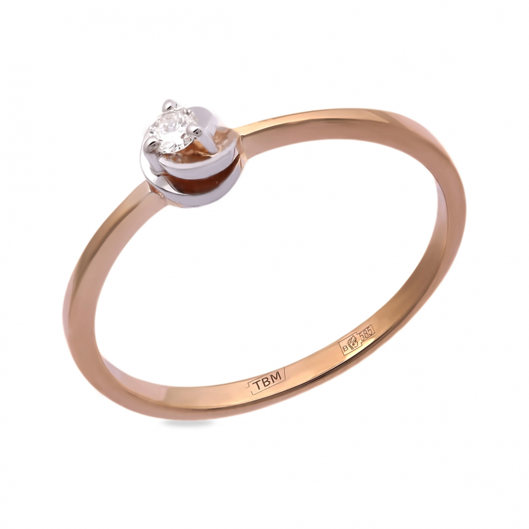Золотое кольцо 585, женское, с бриллиантом, размер 17.5 Артикул: 0103212313-1к